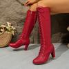 Damen Überweite Spitzzehen-Stiefeletten, Schnürstiefel mit Seitenreißverschluss, Klobiger Absatz, Europäischer Stil für Damen