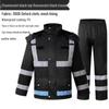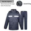 Dieses hochwertige Regenmantel- und Hosen-Set wurde entwickelt, um Sie bei nassen Bedingungen trocken und komfortabel zu halten.. Das in einem auffälligen Marineblau gefertigte Ensemble verfügt über ein reflektierendes Design, das die Sichtbarkeit und Sicherheit erhöht und es ideal für Sicherheits- und Sanitätsarbeiter macht.. Das verdickte Material sorgt für Strapazierfähigkeit und Wärme, während die wasserdichte Konstruktion hervorragenden Schutz vor Regen bietet.. Das zweiteilige Design bietet Bewegungsfreiheit und ermöglicht es Ihnen, auch bei widrigen Wetterbedingungen effizient und selbstbewusst zu arbeiten.