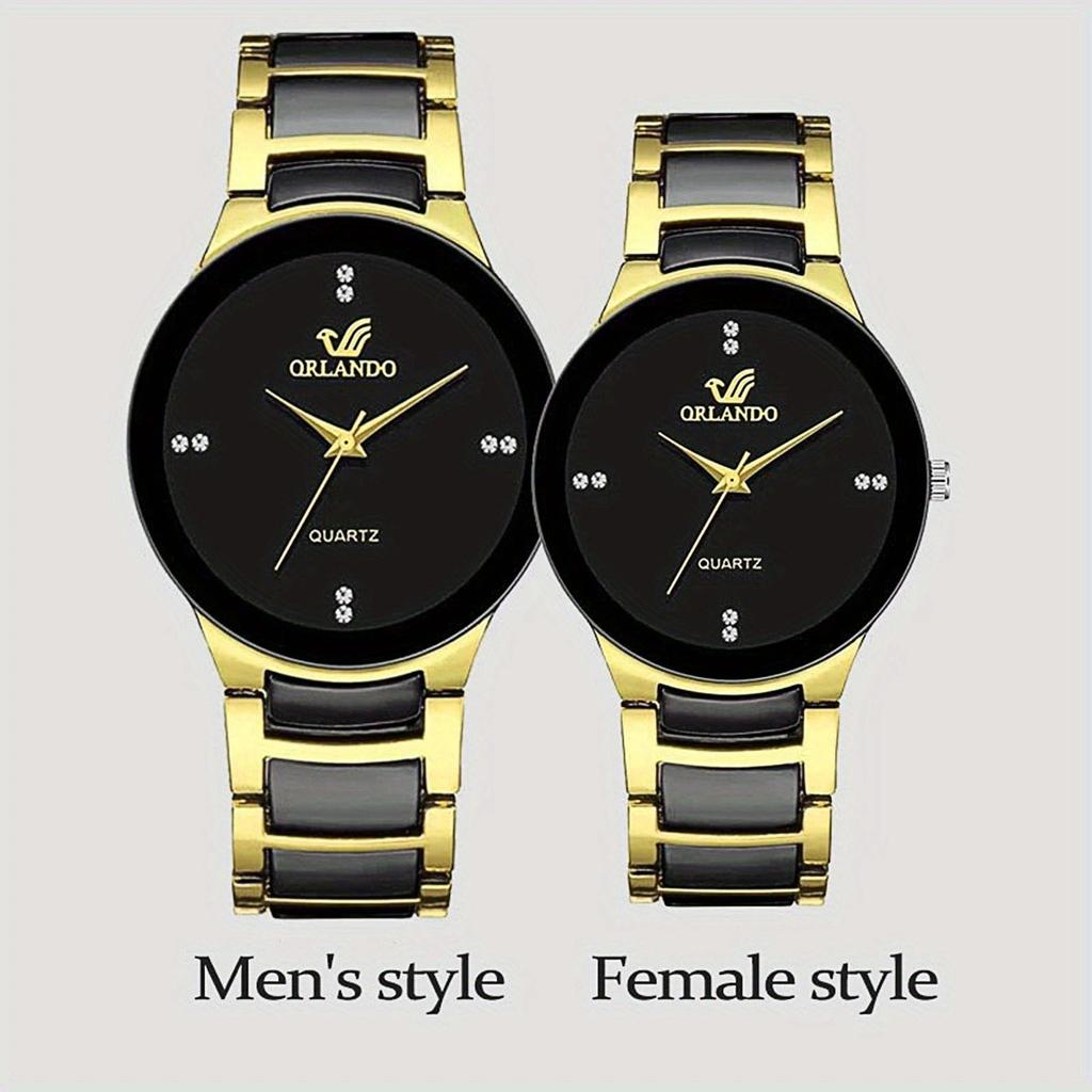 2 Stück-Paaruhren Mode Edelstahlband Herren Damen Analog Quarzuhren Set