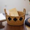 Woven Storage Box Japanese Style Woven Sundries Basket Cosmetics Organizer Box Woven Flower Basket