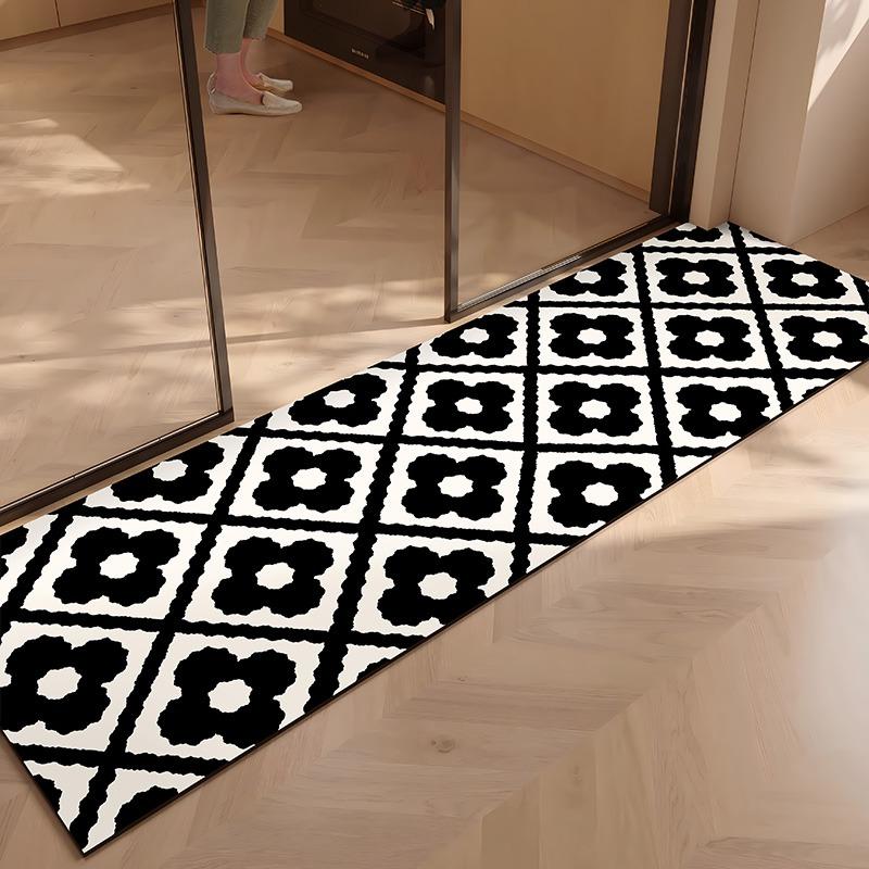 PVC Kitchen Floor Mat Waterproof Leather Foot Mats Non-slip Oil Proof Carpet Long Rug Black Flower Stripe Home Decoration Rugs
