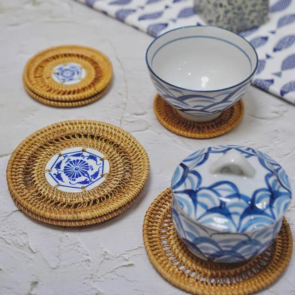 Rattan Gewebter Untersetzer Teezubehör Wärmeisolierpad Schüsselmatte Tischmatte