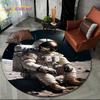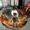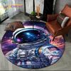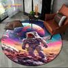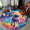Astronaut Univers Weltraumfahrer 3D Weltraum Cartoon Runder Bereichsteppich Teppich für Wohnzimmer Schlafzimmer Kinderdeko, Haustierbereichsteppich Rutschfest