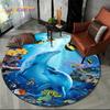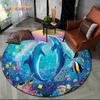 Unterwasserwelt Runder Bereichsteppich–Delfin & Schildkröte Ozean Teppich für Wohnzimmer oder Schlafzimmer–Rutschfeste Bodenmatte, Kinder Spielzimmer Deko
