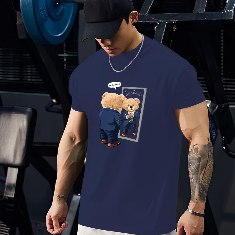 Teddybär Meme Print T-Shirt Atmungsaktiv Kühl, Bequemes Tragen, Täglich Casua