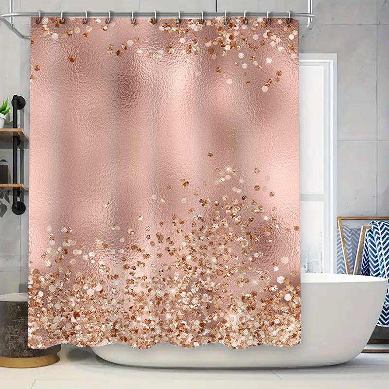 Glänzend Pink Glitzernder Duschvorhang Goldfoliengeprägt Badezimmerdekoration Dekorationen Für Badezimmerzubehör Hochzeitsfeier Fuchsie
