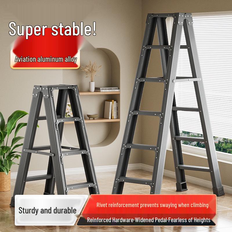 Aluminum Alloy Folding Telescopic A-Frame Ladder - Widened & Thickened, Lightweight, Double-Sided for Indoor Use