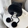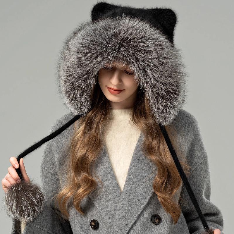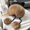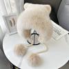 Koreanische Version der neuen Fuchspelzmütze für Damen, Herbst und Winter, niedliche Bärenstrickmütze, warmer Ohrenschutz, Pelzmütze lässt das Gesicht schmaler wirken