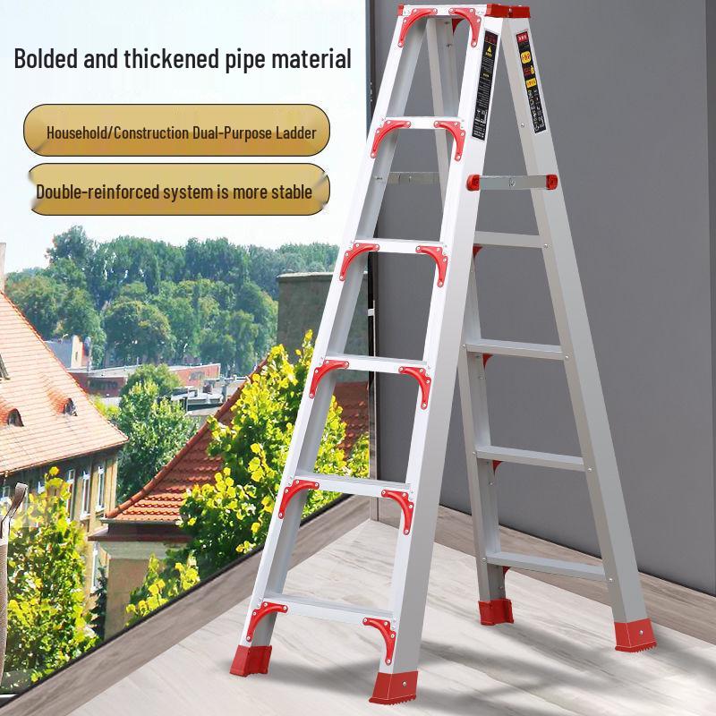 Double-Sided Aluminum Alloy Folding Step Ladder - Ladder Free Shipping, Widened & Thickened for Household or Attic Use