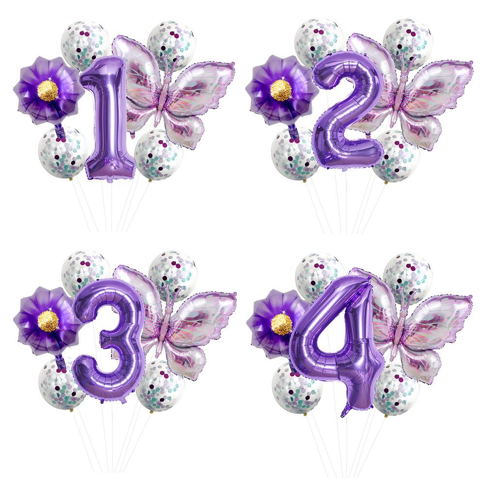 Lila Schmetterling 32-Zoll Digitalblume Aluminiumfolienballon-Set Baby Geburtstagsparty Dekoration Szenenarrangement