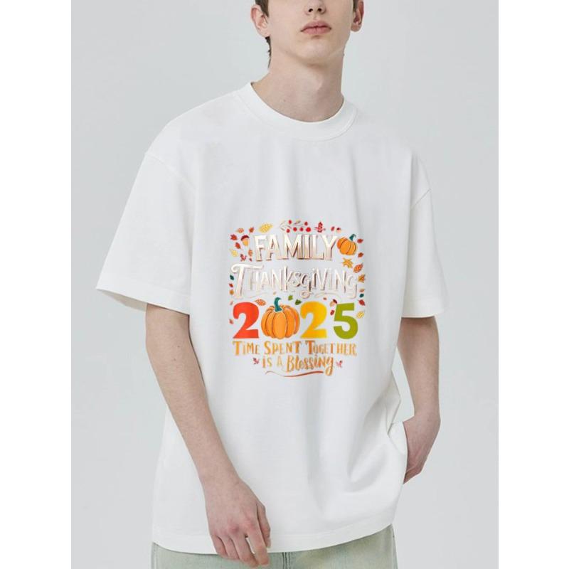Familien-Thanksgiving 2025 T-Shirt Schwarz Kürbis Blätter und Text Design für Feiertagsfeier