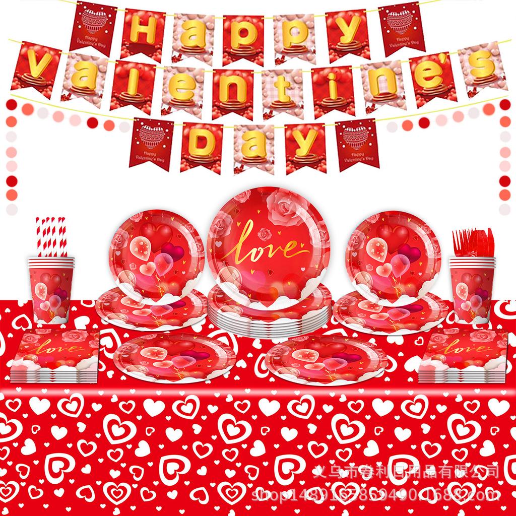Valentinstag Partyzubehör Geburtstagsdekoration Arrangement Banner Zugflagge Geschirr Pappteller Papierserviette Papierbecher