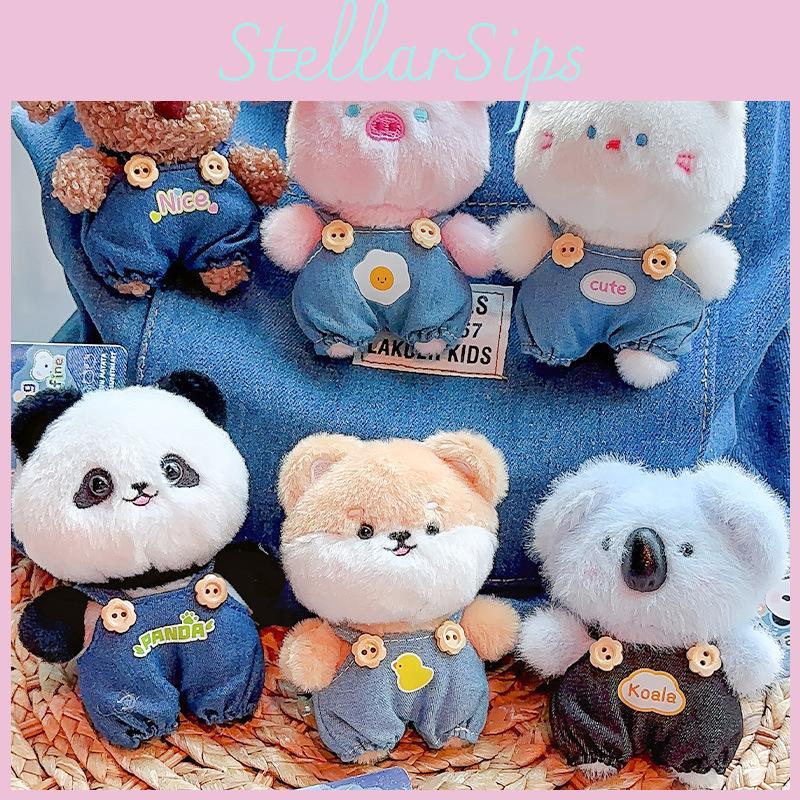 Trendiger Original Jinnew Schlüsselanhänger mit weichen Plüsch-Cartoon-Tierdesigns im Denim-Stil