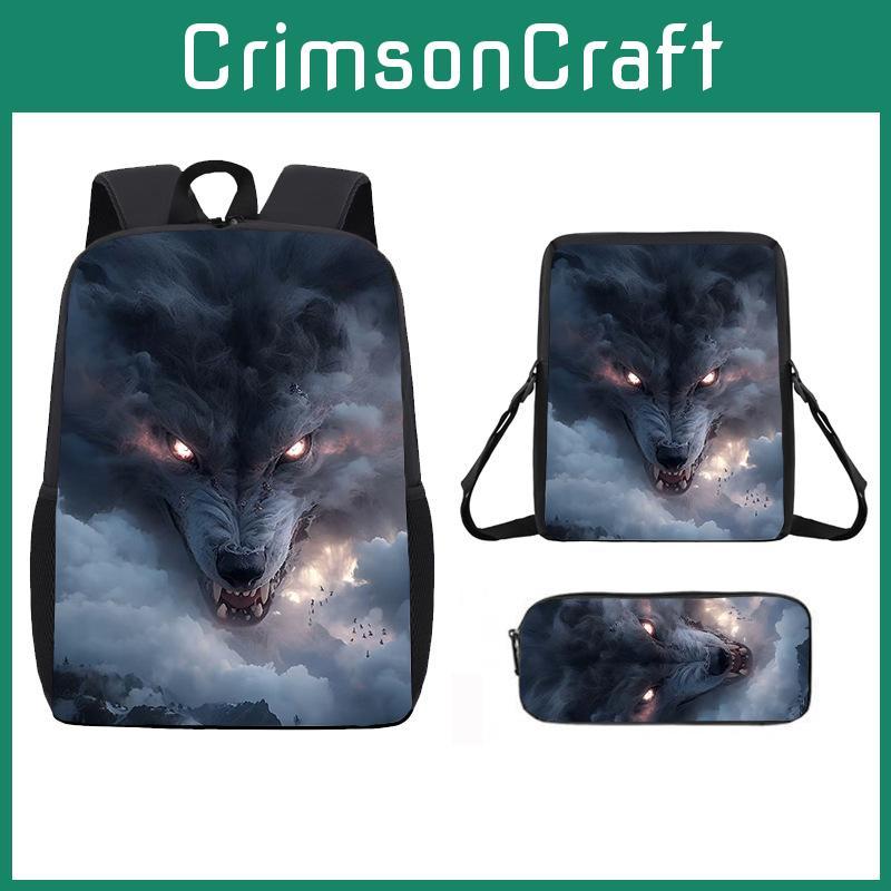 Rucksack mit Wolfsmuster, Kinder-Schultertasche, Federmäppchen, Schüler-Schultertasche