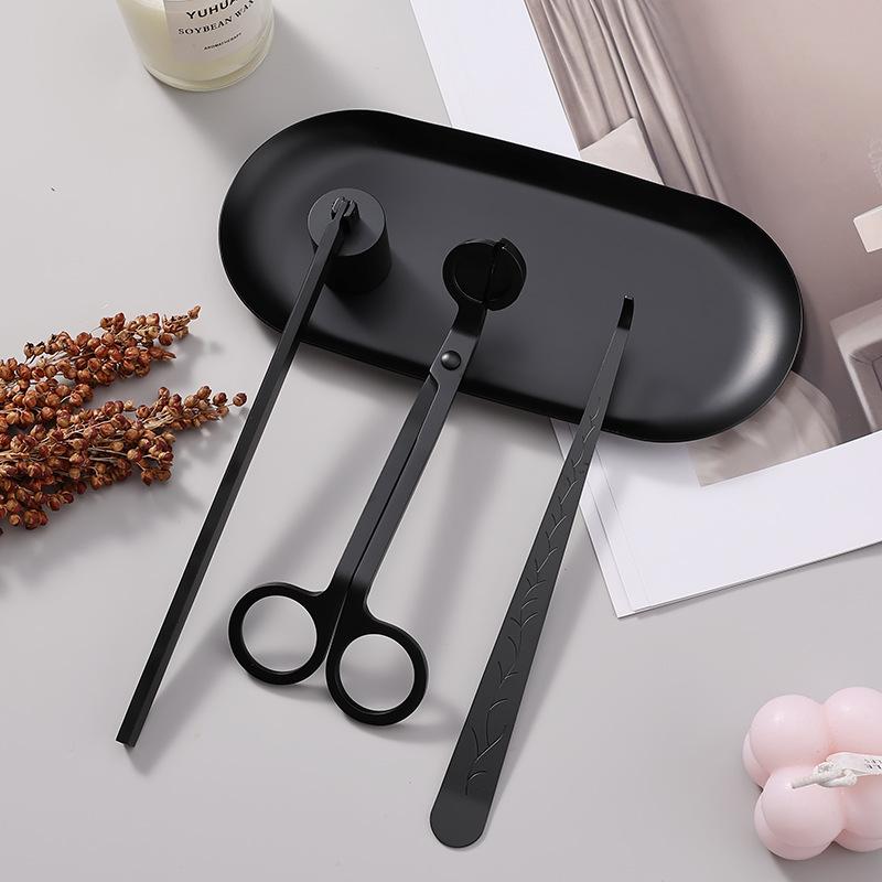 Kerzenlöscher und Schere aus Edelstahl Schwarz Aromatherapie-Werkzeug 4-teiliges Set