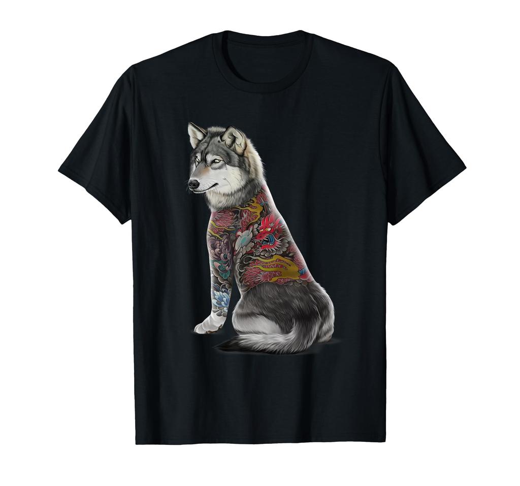Grauer Wolf Traditionelles Japanisches Drachen Tattoo Irizumi T-Shirt