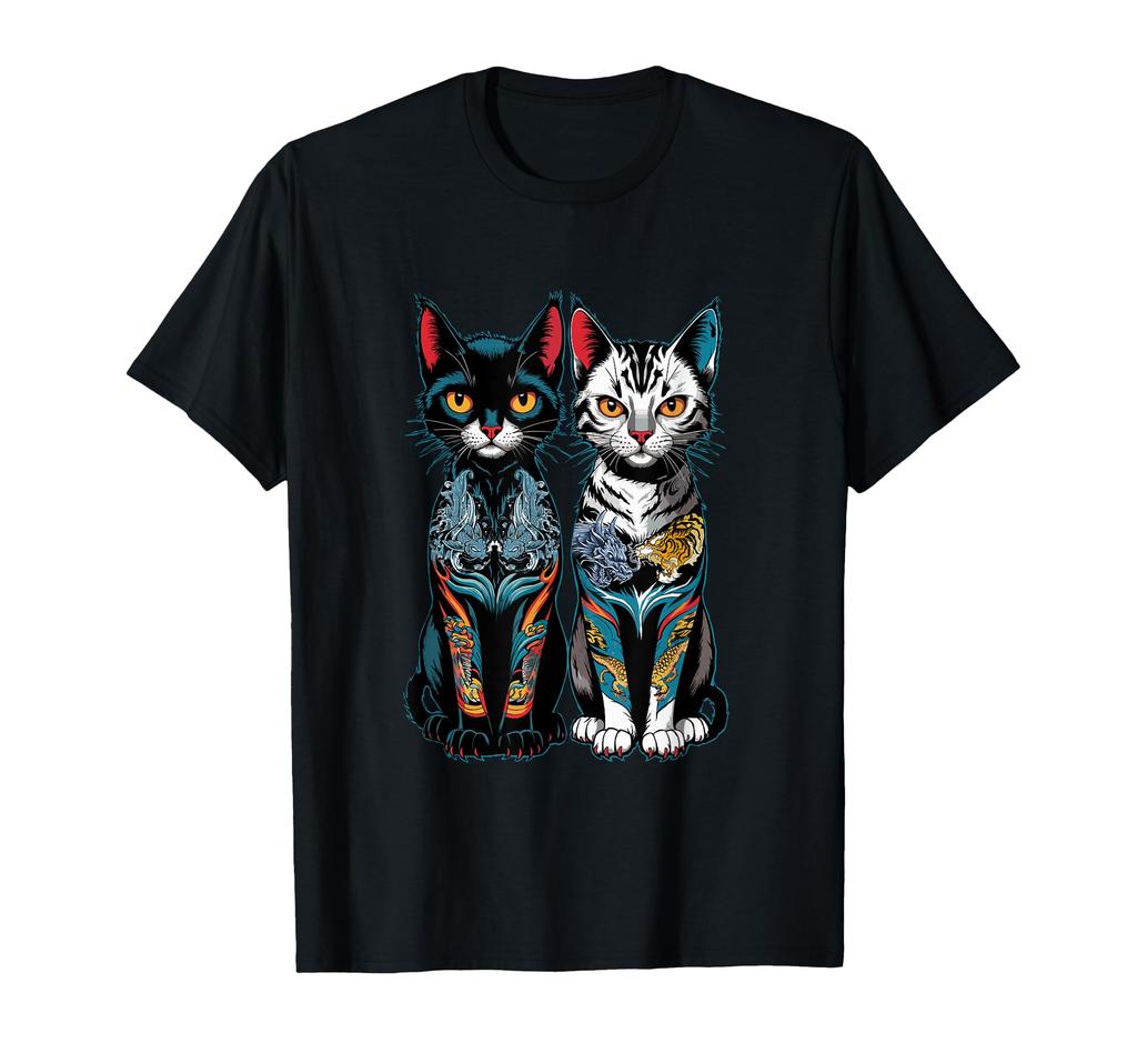 Tattoo Samurai Katze Japanischer Drache und Tiger Ästhetik T-Shirt