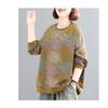New Spring and Autumn Women's Spliced Printed Pullover Round Neck Sweatshirt Western Style Retro Casual Top
