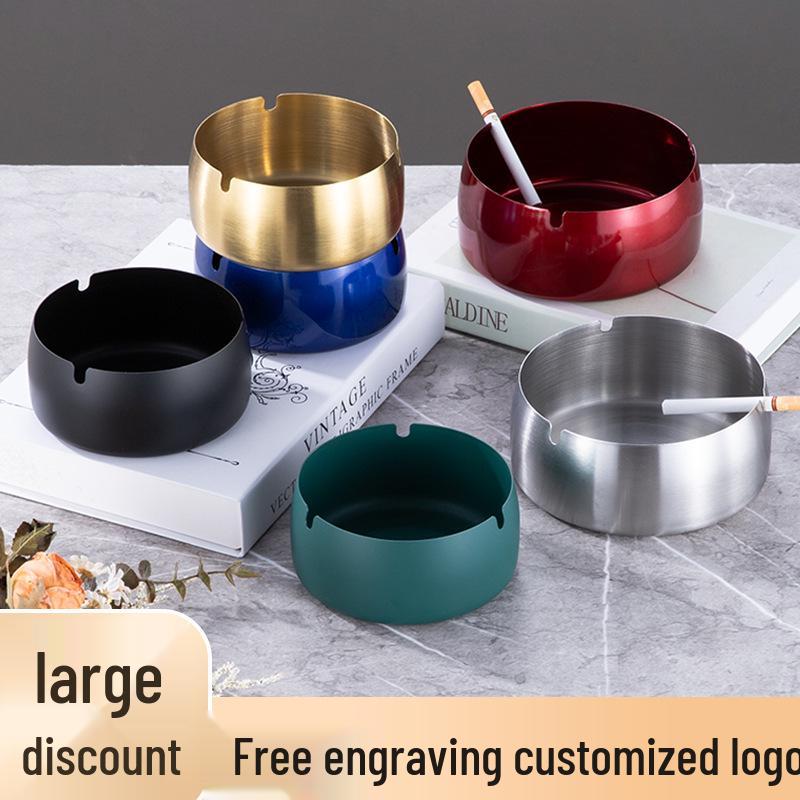 Commercial Windproof Stainless Steel Ashtray - Large Size, Custom Logo for Household, Internet Cafe, Hotel, and Restaurant Use