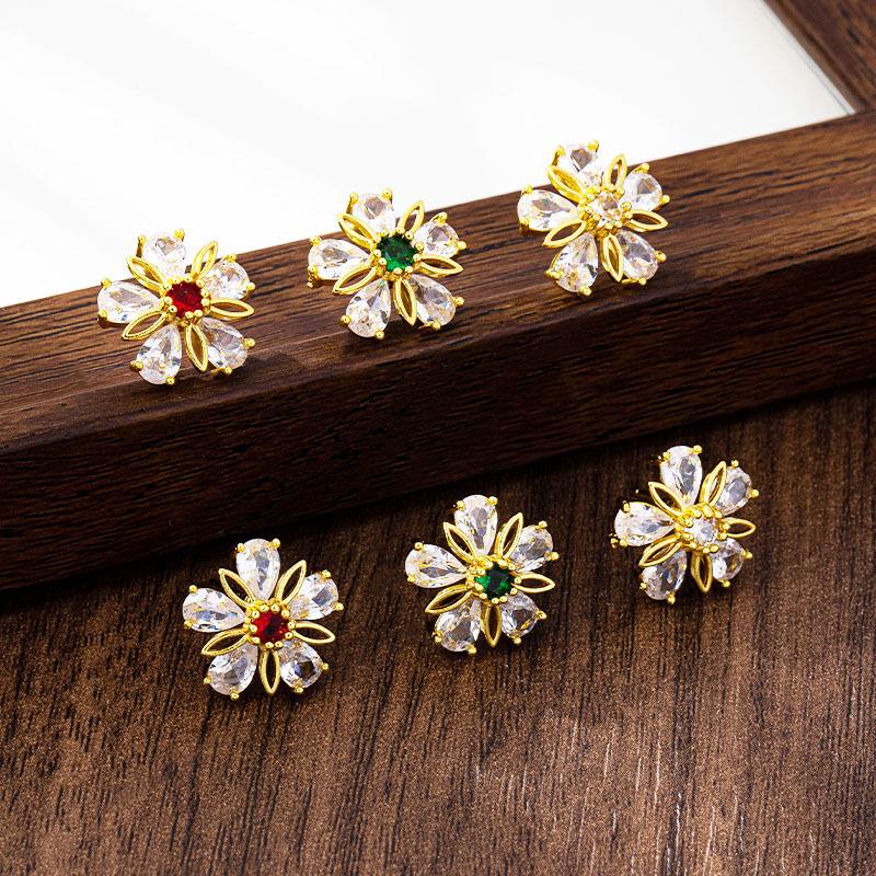 Luxuriöse pastorale Zirkon-Blütenstecker - Damen Gold, Vielseitiger & Langlebiger farbechter Schmuck