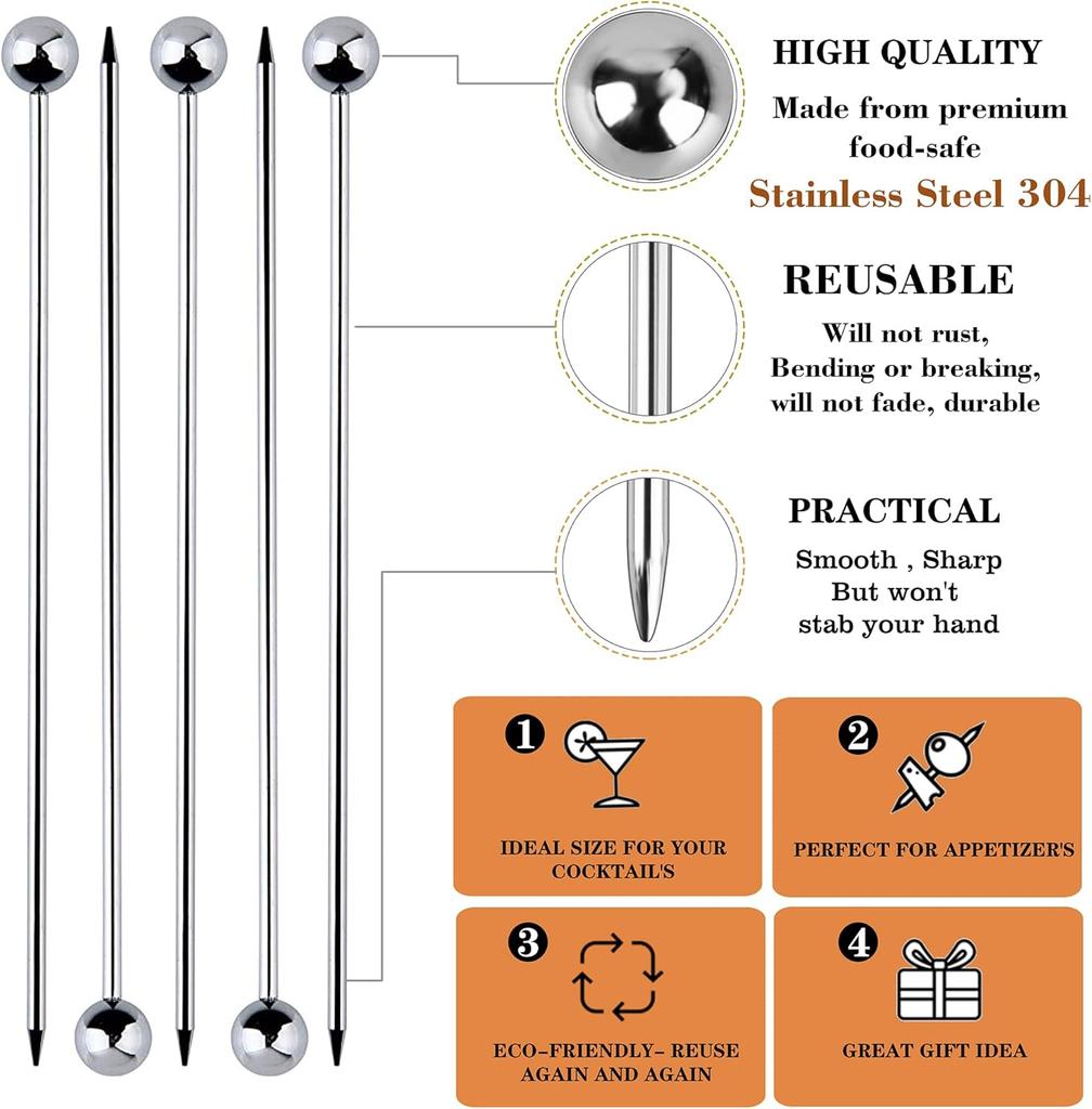12 Stück Edelstahl Cocktailspieße Barwerkzeuge Getränkerührstäbchen Getränkedekoration Wiederverwendbare Fruchtspieße Cocktailspieße