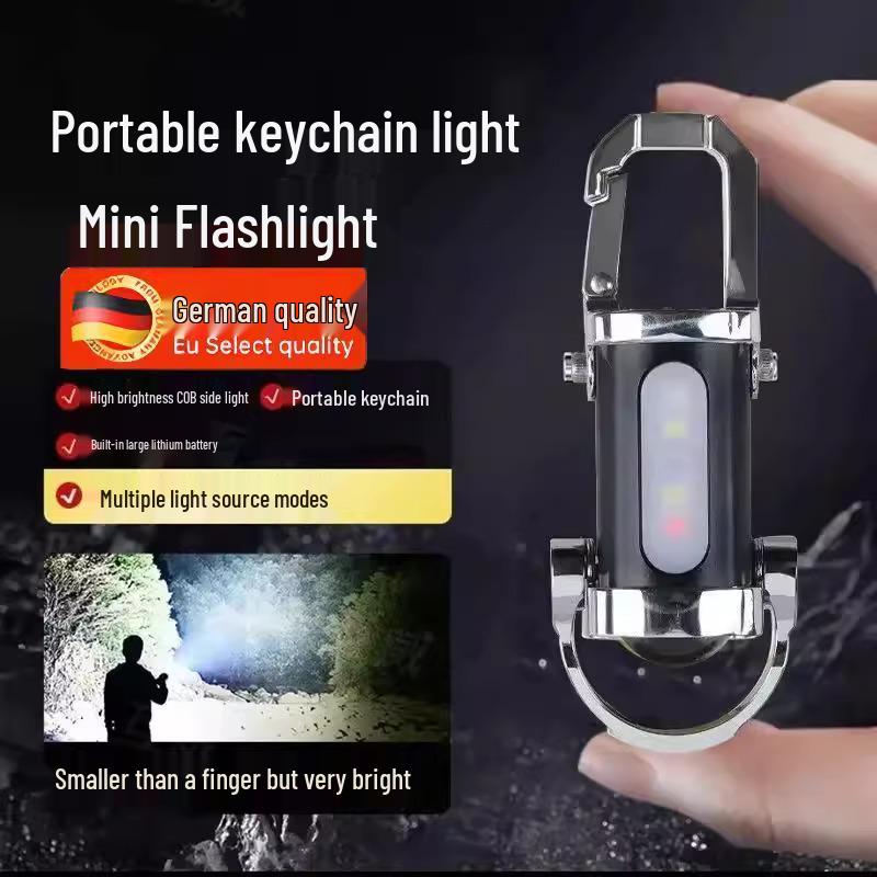 German Waterproof Multifunctional Mini Flashlight Keychain with Emergency Recharge & Large Floodlight