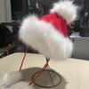 Damen Rote Bommel Strick Lei Feng Mütze - Warmer Samt, Modische Ohrenschutz Skimütze für Weihnachten & Neujahr.