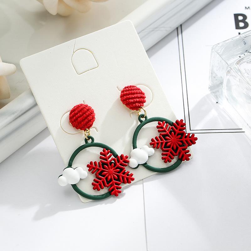 S925 Silbernadel Koreanischer Stil Schneeflocke Rot Ohrringe - Weihnachten & Neujahr Mode Ohrstecker für Frauen.