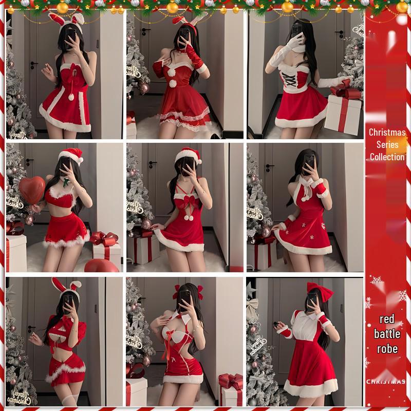 Festive Velvet Role-Play Lingerie Set: Cross-Border Sexy Christmas and New Year Red Nightgown