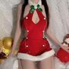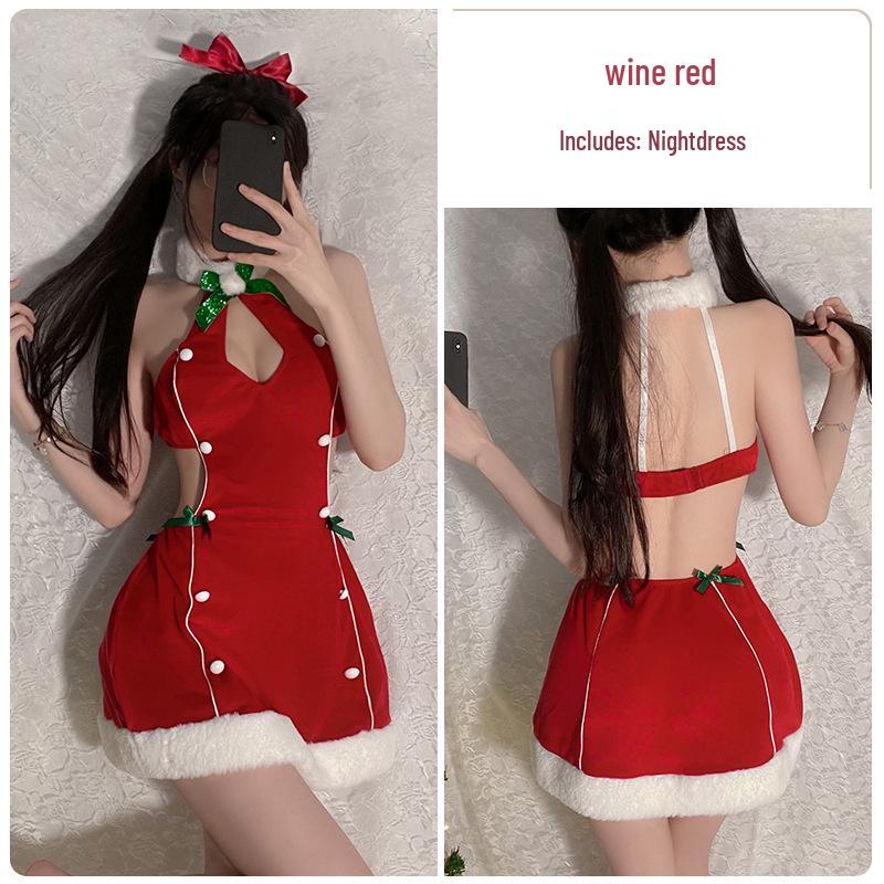 Rose Velvet Christmas Cutout Halter Lingerie Set for Women