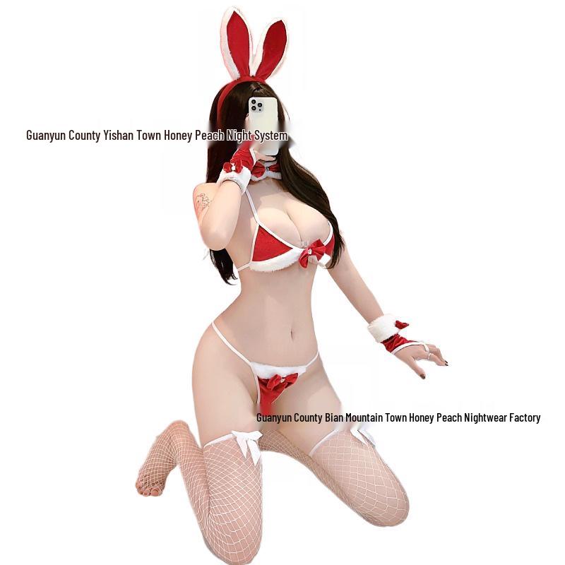 Red Three-Point Plush Bunny Costume Lingerie Set for Christmas & New Year Role Play