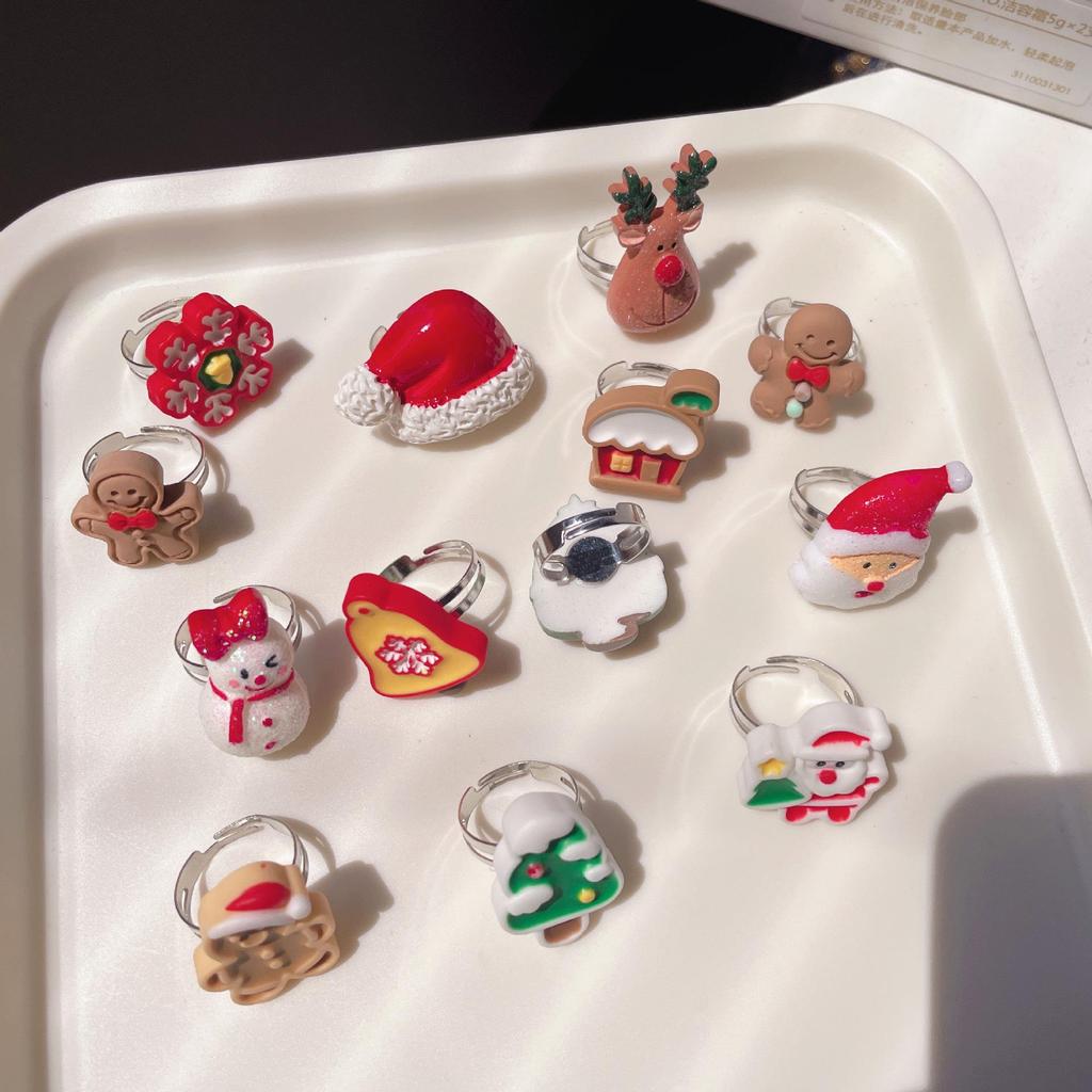 Süßer Weihnachts-Cartoon-Ring: Weihnachtsmann, Rentier, Baum Offener Schmuck für Mädchen