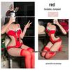 Festive Red Lace See-Through Bodysuit - Sexy Strappy Lingerie for Holidays