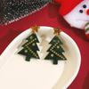 Geometrische Farbblock-Hängeohrringe mit Silbernadel-Weihnachtsbaum für Frauen