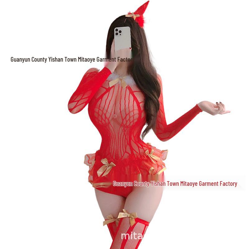 Sensual Christmas Lingerie Fishnet Princess Dress Costume Set