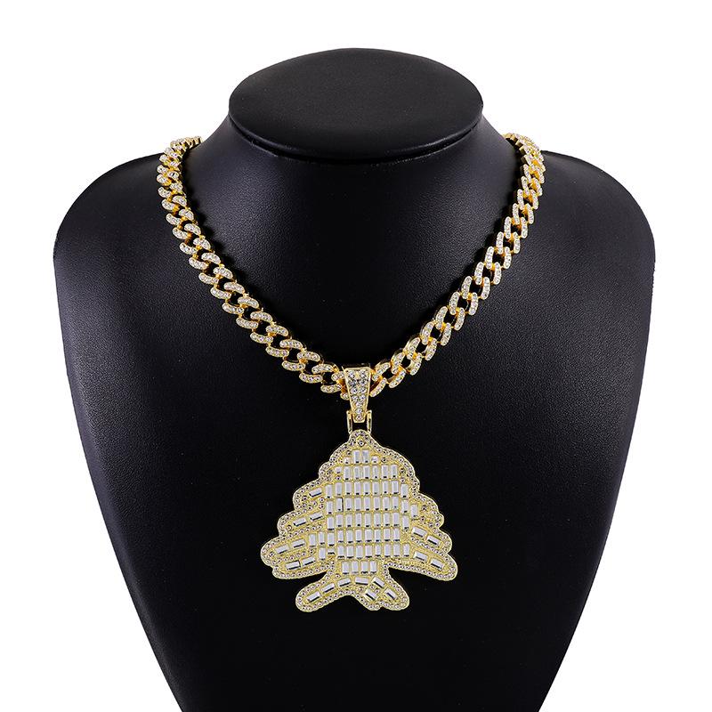 Goldener Hip-Hop-Weihnachtsbaum-Anhänger mit quadratischem Zirkon - Leichter Luxus, hochwertig galvanisierte Legierung.