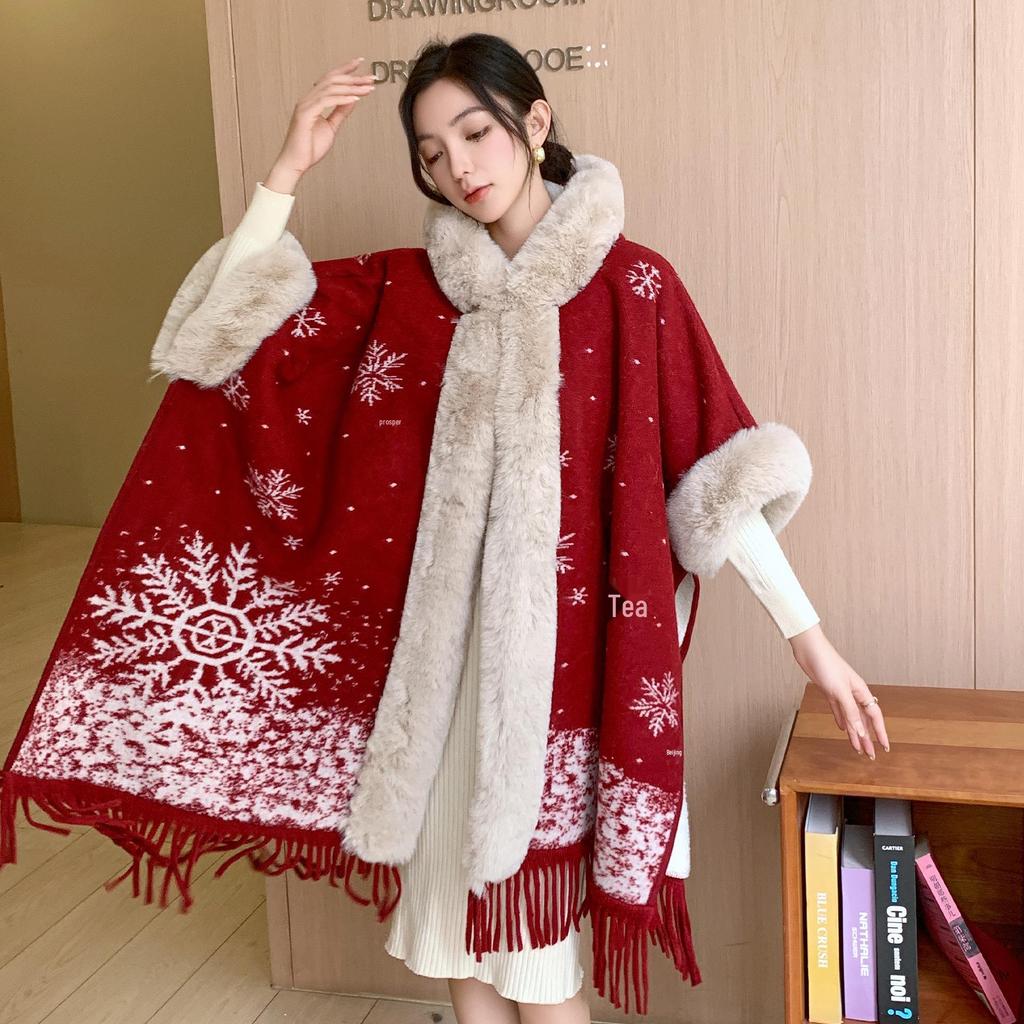 ModellKapuzenumhang - Rot mit großen Schneeflocken