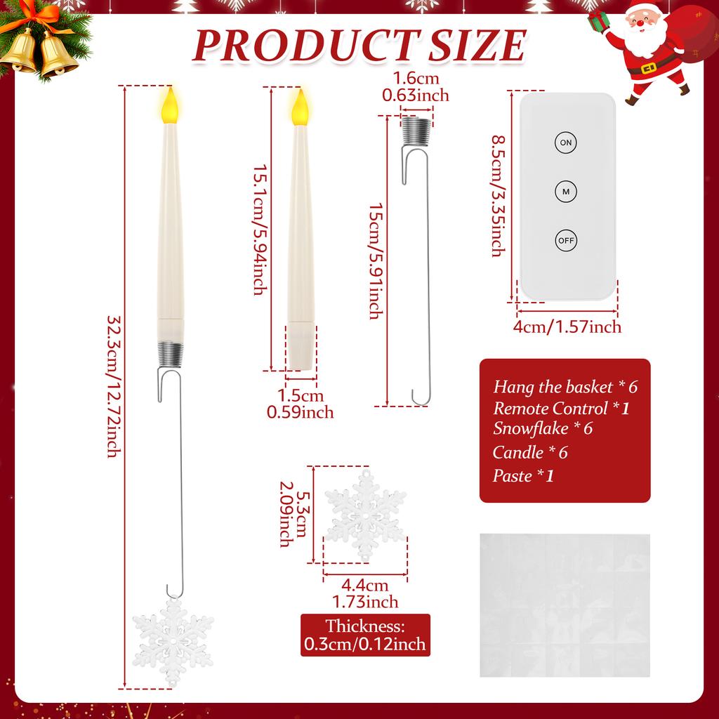 6Pcs LED Flameless Taper Candles Battery Operated Flickering Candles Family Party Holiday Home Christmas Tree Decoration Light