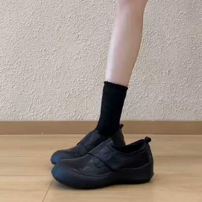Lammfellversion Dicksohlige Klettverschluss Pendler Damen Vielseitige Schwarze Runde Kopf Mode Schuhe