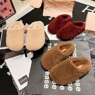 Nische trendige Marke Herbst und Winter neu Lammwolle warme Tasche Kopf ein Pedal faul flache Hausschuhe Damen