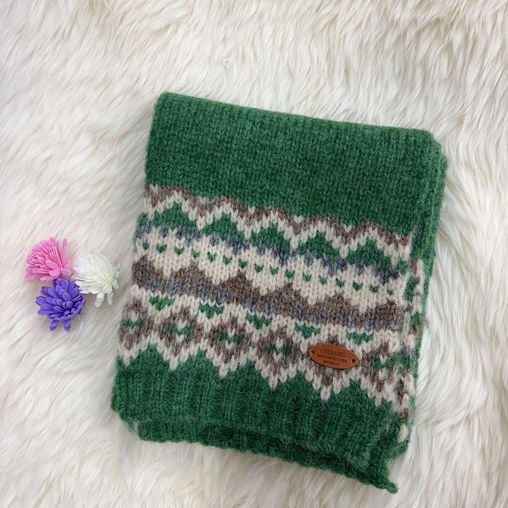 2024 Fair Isle Grüner Strickschal: Winter Koreanischer Stil, Weihnachtsatmosphäre, Dicker & Warmer Nackenwärmer für Männer & Frauen