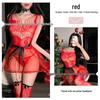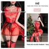 Red Sheer Christmas Lingerie: Sexy Slim-Fit Dress with Fishnet Stockings for New Year's Eve.