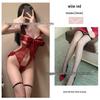 Red Transparent Backless Bow Tie Bodysuit - Open Crotch, Sexy Lingerie for Christmas & New Year