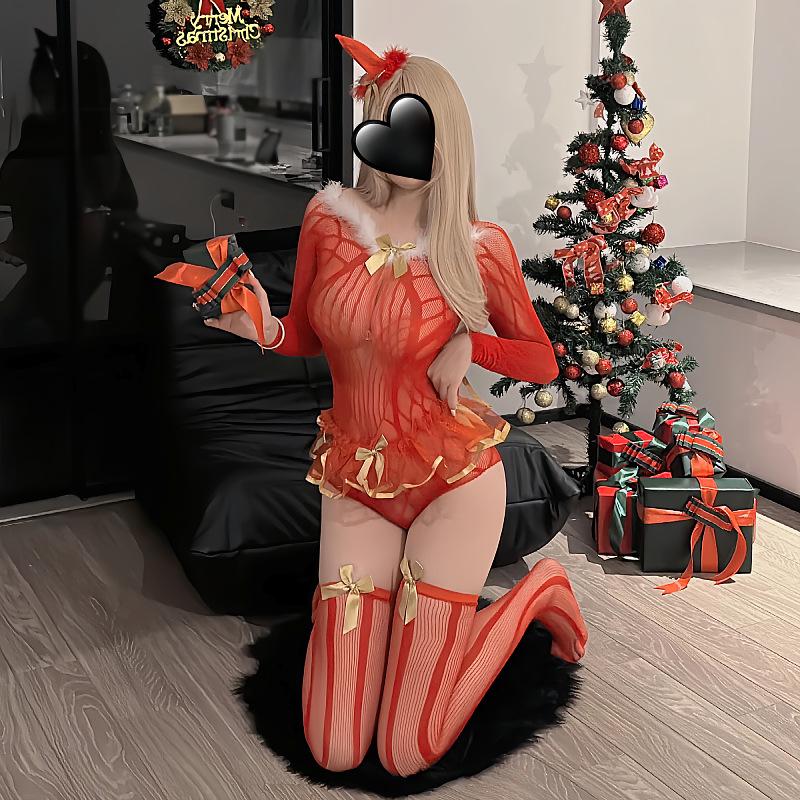 Sexy Christmas Princess Lingerie: Tempting Bodysuit with Fishnet Stockings