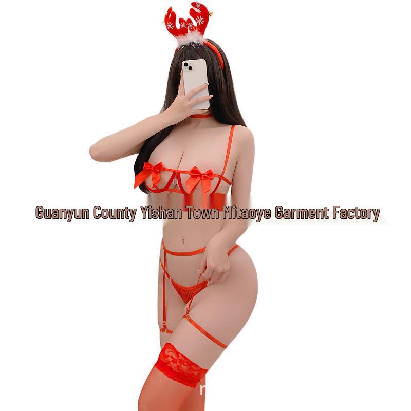 Reindeer Game Holiday Lingerie Set: Underwire Bra with Bow, Skirt, and Headpiece