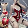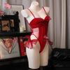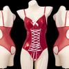 Sensual Red Lingerie Bodysuit with Bow - Perfect for New Year's or Christmas