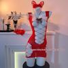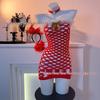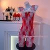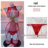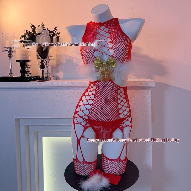 Red Fishnet Stockings with Golden Bow and Fluffy Christmas Accent