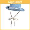 Women Fashion Denim Embroidered Bow Pattern Wide Brim Fisherman Hat Sunshade
