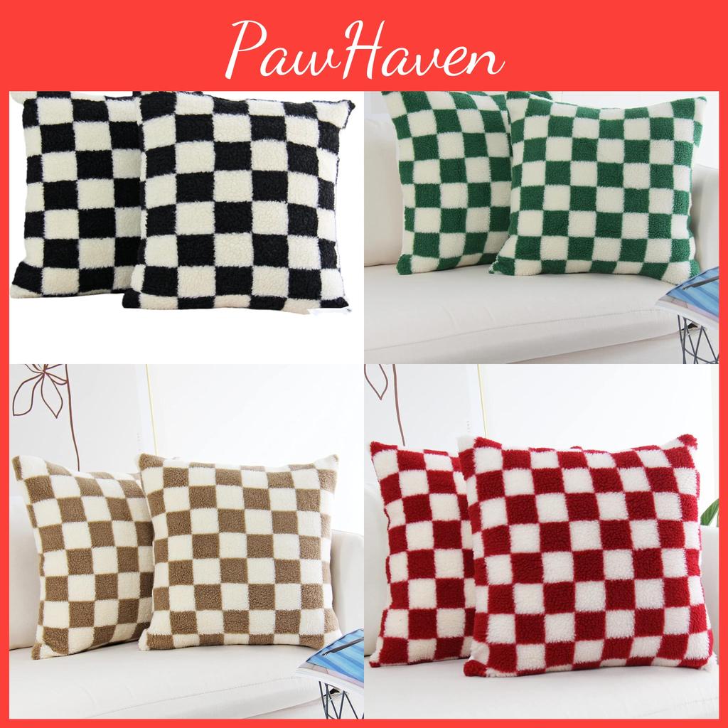 Schachbrett Plüsch Muster Kissenbezug Auto Zuhause Wohnzimmer Sofa Schlafzimmer Kissen