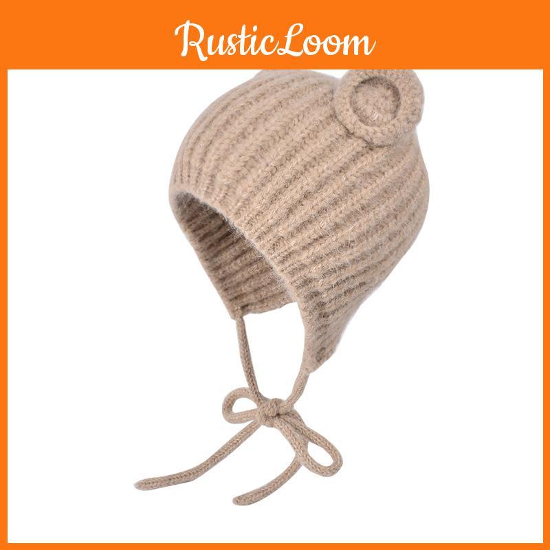 Niedliche Bärenstrickmütze mit Ohrenschutz und einfarbigem Design für kalte Tage